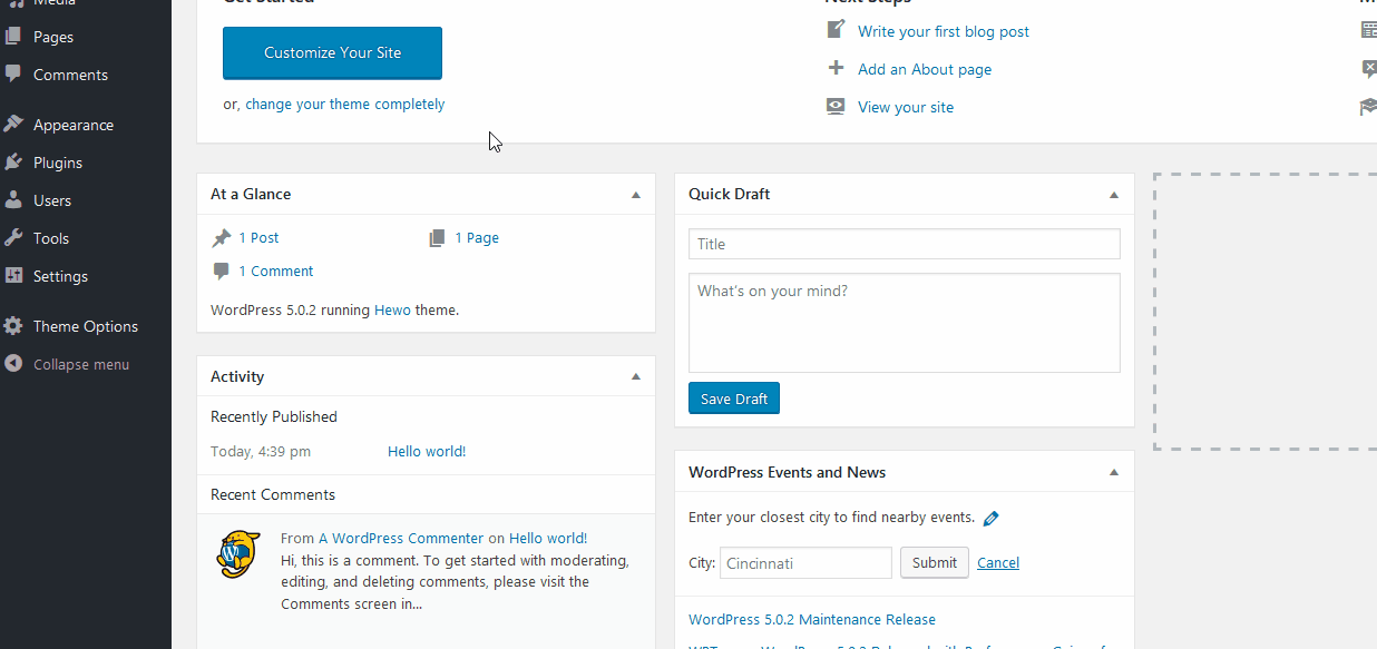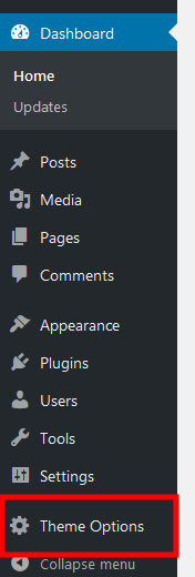 After active the plugin, click to Dashboard on left sidebar to reload page. You will see the Theme Options menu.