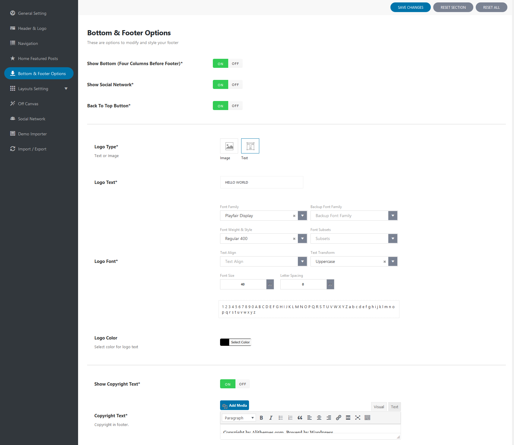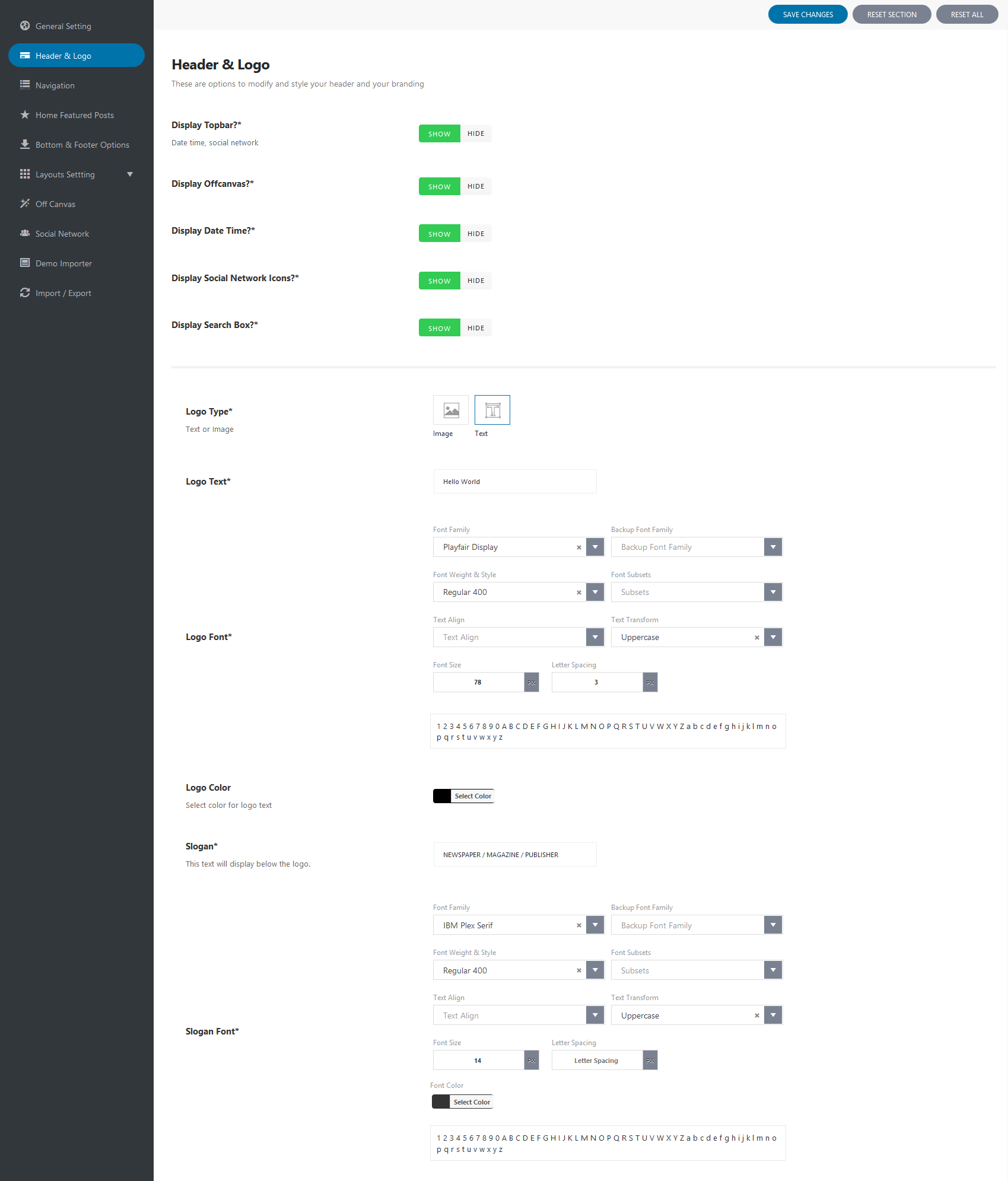- For Logo Text, you can choose the font family, size, color...