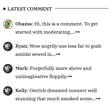 This widget will show the latest comment with author avatar. You can choose the number comment to show.